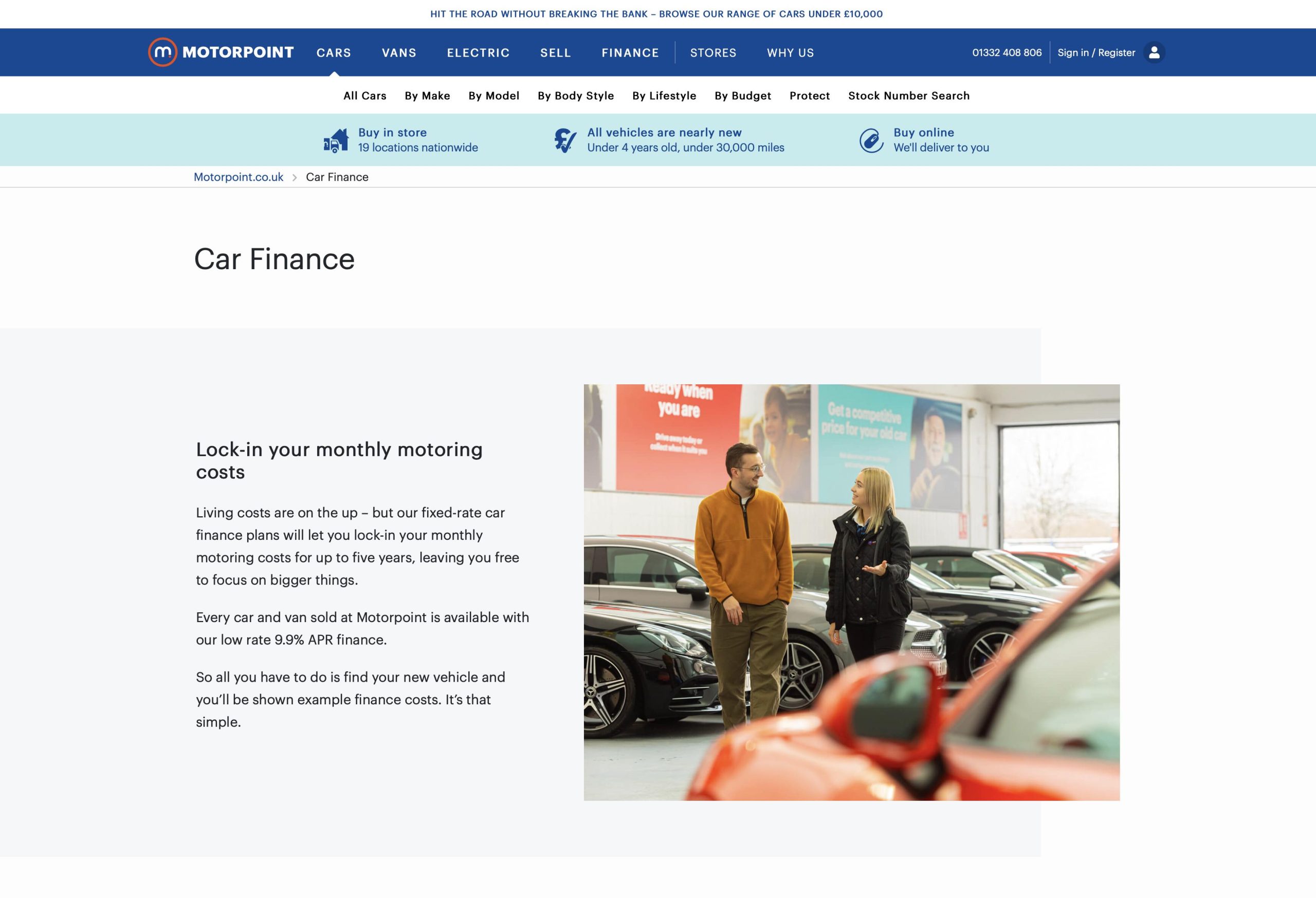 Motorpoint is an automotive brand with a fairly long history in the industry, offering cars and finance plans for over twenty years. Starting in 1998, this business has always been one that has had the interests of UK motorists at heart and spreadhead initiatives such as the BBC’s Rip Off Britain campaign.