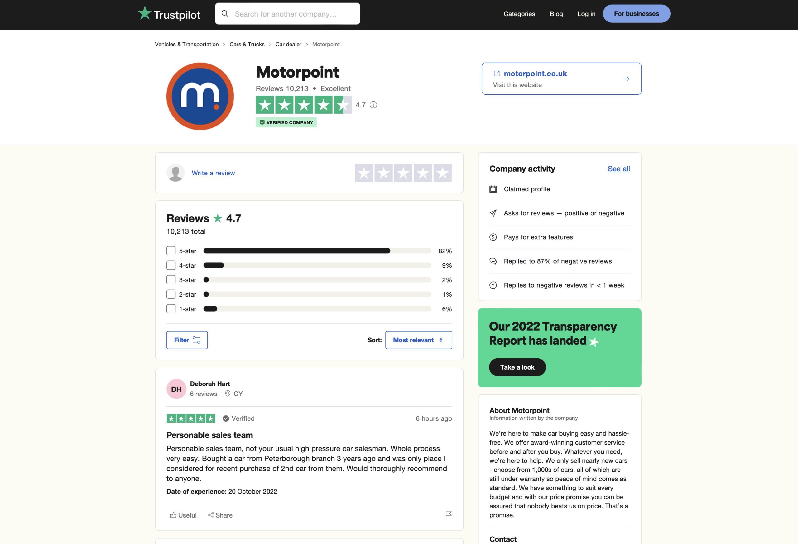 Here’s a more in-depth look at how Motorpoint reviews on Trustpilot to see if they’re one of the best car dealerships online and if you should consider using them yourself.